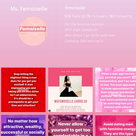 Check out my sure fire leveling up, feminine, hypergamous and relationships Instagram & Twitter posts!